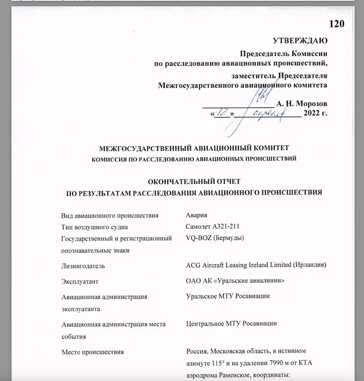 Hoje, vários anos após o acidente, o MAK ainda não divulgou oficialmente seu relatório final sobre a queda do voo 178 da Ural Airlines, embora seu site tenha indicado há muito tempo que a investigação está encerrada. Em vez disso, o relatório final completo, incluindo a opinião divergente do representante da Rosaviatsiya e a resposta contundente do MAK, começou a aparecer nos canais de aviação russos no aplicativo de mensagens Telegram no verão de 2022. Alguns meios de comunicação independentes e de oposição russos já noticiaram as descobertas, mas tanto o MAK quanto a Rosaviatsiya mantiveram silêncio. Suspeitando que o "vazamento" do relatório final tinha a intenção de enviar uma mensagem, decidi adquirir uma cópia, verifiquei sua autenticidade e traduzi-a para o inglês. Embora eu seja fluente em russo, o relatório era longo, a linguagem era densa e meu tempo era limitado, então não o terminei até julho de 2023 — mas agora que está pronto, posso finalmente compartilhar a complexa verdade sobre o voo 178, como o MAK a viu.