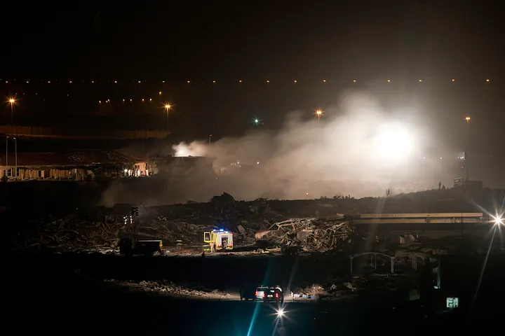 | Equipes de bombeiros atendem ao local na noite do acidente (Haider Yousuf) |