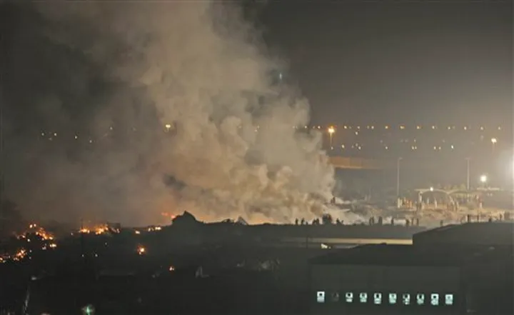 | Fumaça sobe dos destroços na noite do acidente (AP) |
