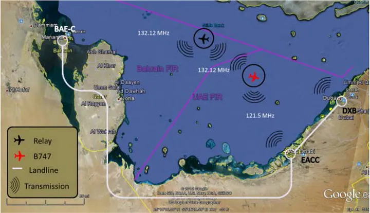 Mas assim que o voo 6 ultrapassou os limites do setor do Bahrein, ele também voou para fora do alcance do radar. Isso significava que o centro de controle da área de Dubai era agora a única instalação com conhecimento direto da posição, altitude, velocidade e direção do voo, mas Dubai não podia falar diretamente com a aeronave de emergência. Os centros de controle de tráfego aéreo têm frequências de rádio estritamente definidas para evitar confusão, e os controladores de Dubai não podiam simplesmente transmitir na frequência do Bahrein porque seu equipamento não era nem mesmo sintonizável. Portanto, a única maneira de guiar o voo 6 até o ponto de interceptação do ILS era Dubai observar o voo no radar e, em seguida, passar suas informações de posição para o Bahrein por telefone fixo, que por sua vez as passaria para a aeronave de retransmissão, que finalmente as passaria para a Bell.