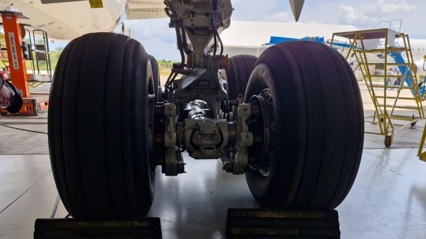 | Pneus de um dos trens de pouso de um Boeing 767 (Foto: Fábio Munhoz/CNN) |
