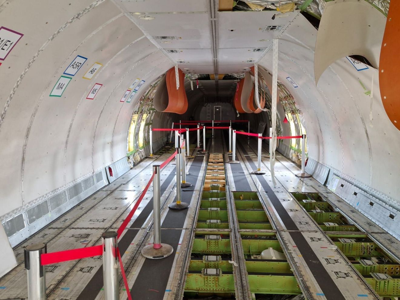 Tanque de combustível de um Airbus A320; estrutura foi aberta para alunos da escola de mecânicos da Latam em São Carlos (SP) (Foto: Fábio Munhoz/CNN) |