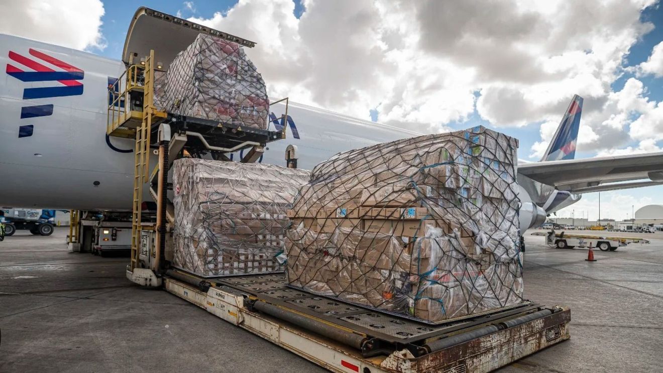| Carga é acomodada em pallets aeronáuticos antes de ser colocada nos aviões (Divulgação/Latam) |