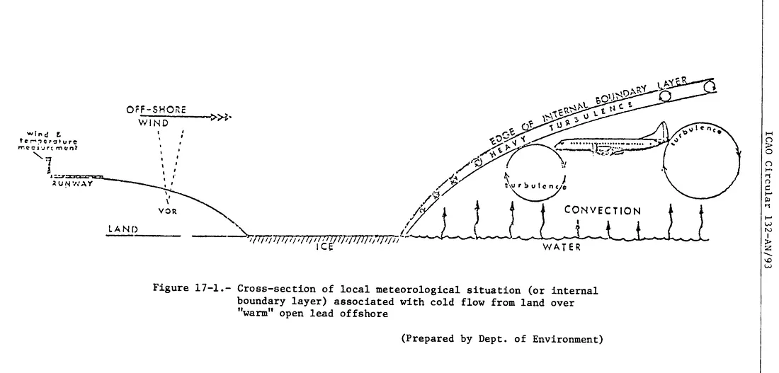 Um esboço da situação meteorológica quando o voo 416 se aproximava da pista (Relatório do Ministério dos Transportes)