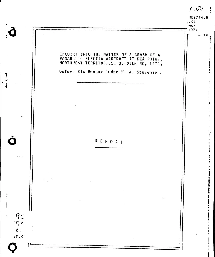 Logo após o acidente, investigadores de carreira da Região Central do Ministério dos Transportes receberam chamadas telefônicas de manhã cedo convocando-os para uma das áreas mais remotas da Terra. Mas quando o dever chama, os investigadores de acidentes não fogem do desafio, e em poucas horas uma equipe estava a caminho de Rea Point a bordo do Electra restante da Panarctic.