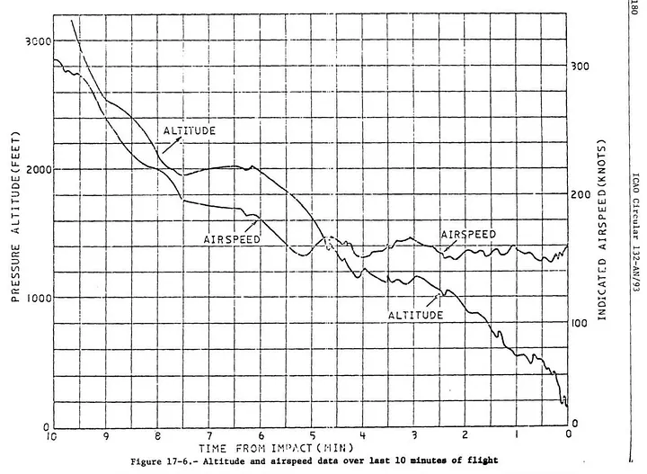 Essa grande decepção só foi agravada quando eles descobriram que o gravador de dados de voo também estava parcialmente com defeito. O FDR era um modelo mais antigo que inscrevia cinco parâmetros em um carretel giratório de papel alumínio, mas a caneta de direção estava quebrada e os dados de velocidade e altitude faziam pouco sentido.