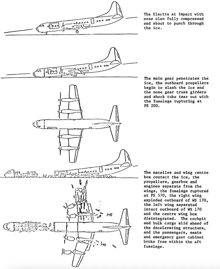 Descendo com um ângulo de inclinação de 7 graus do nariz para baixo, asas niveladas e uma guinada de 2 graus para a esquerda, o Electra colidiu de cabeça no gelo marinho a pouco menos de duas milhas náuticas da pista. Embora o gelo tivesse apenas cerca de 20 cm (8 pol) de espessura, eles poderiam muito bem ter impactado concreto.