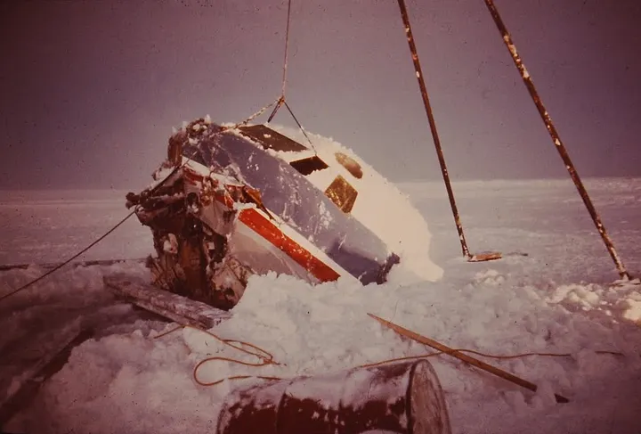 A cabine do CF-PAB é recuperada do Oceano Ártico (Sociedade Histórica da Aviação Canadense)
