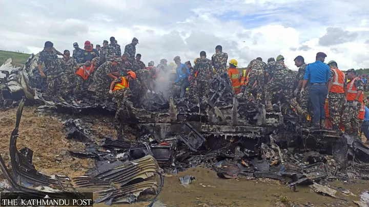 Equipes de resgate vasculham os destroços carbonizados da cabine de passageiros (The Kathmandu Post)