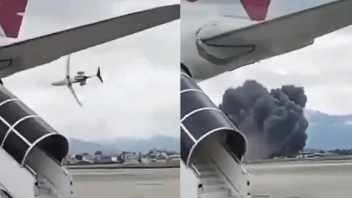 Imagens das câmeras de segurança do aeroporto mostram o avião fazendo