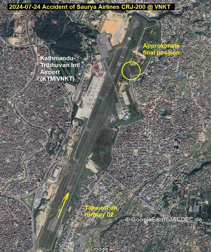 Em seu relatório final, os investigadores criticaram os serviços de resgate e combate a incêndios do Aeroporto Tribhuvan pela resposta desorganizada, que o relatório atribuiu em parte à falha em incluir a área do local do acidente em exercícios de simulação ou em grande escala. No entanto, tanto a resposta quanto a gravidade do próprio acidente foram afetadas negativamente pela presença de edifícios e terreno íngreme na zona de impacto. De acordo com as normas da Organização da Aviação Civil Internacional (OACI), pistas da mesma classe que a pista 02 de Tribhuvan devem ter uma área livre de 140 metros de cada lado do eixo da pista, mas o equipamento da Air Dynasty atingido pelo avião estava a apenas 120 metros do eixo, e o talude inclinado estava ainda mais próximo. Na opinião dos investigadores, se a área livre de 140 metros exigida tivesse sido estabelecida, os danos à aeronave teriam sido menos graves e mais pessoas poderiam ter sobrevivido.