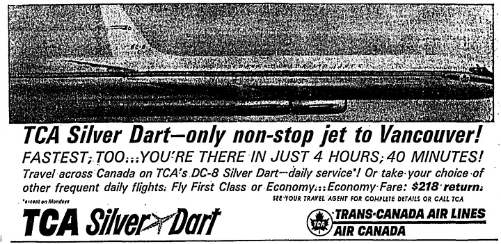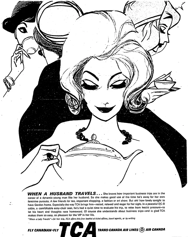 Um anúncio de jornal da TCA de 1963 que mostra como era a vida nos anos 60 e como as viagens de negócios eram quase sempre feitas por homens