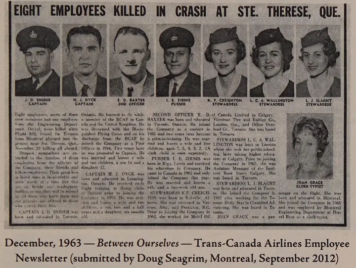 A citação é de Doug Seagrim, cujo pai era Herb Seagrim, vice-presidente executivo da Trans-Canada Air Lines na época (Fonte: “Voices from a Forgotten Tragedy”)