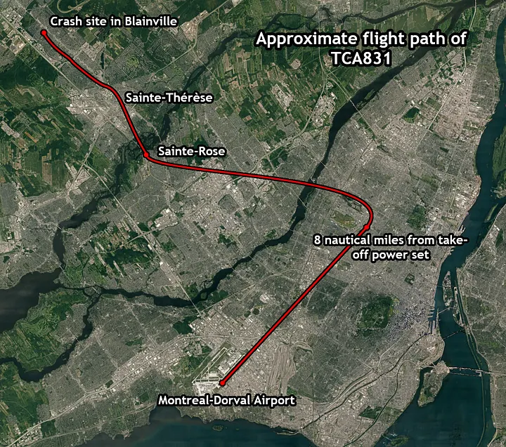 Quando o acidente ocorreu com o voo TCA831, eles provavelmente estavam entre 5.000 e 7.000 pés. A verdadeira questão relativa ao acidente era por que os pilotos sentiram a necessidade de abaixar totalmente o nariz do avião, o que os investigadores sabiam que havia acontecido, já que essa era a única maneira de o estabilizador assumir a posição em que foi encontrado. Também se sabia que os pilotos estavam puxando o manche com toda a força no momento do impacto, demonstrando que estavam tentando salvar a aeronave.