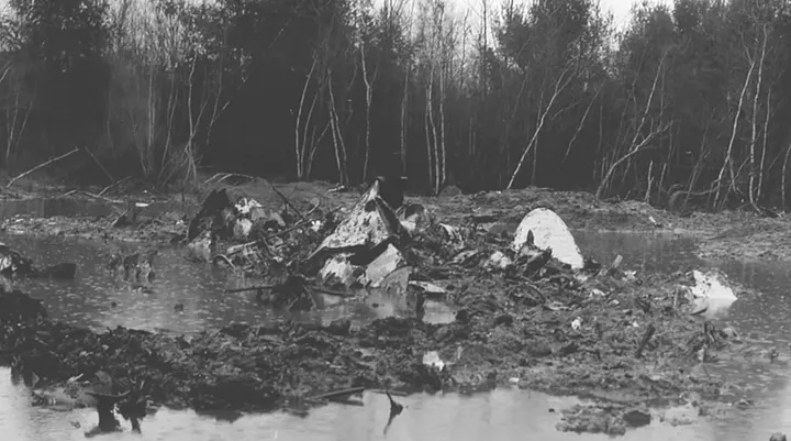 Árvores que provavelmente ajudaram o grupo de Estruturas a determinar a direção e a atitude do avião (Fonte: “Voices from a Forgotten Tragedy”)