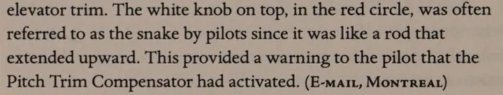 De qualquer forma, esta aeronave estava com o nariz excessivamente para baixo, próximo ao limite máximo (2° é o limite para o compensador de nariz para baixo), e isso foi feito intencionalmente. Agora, como o restante da investigação demonstrará, isso não significa que os pilotos queriam causar um acidente com o avião.