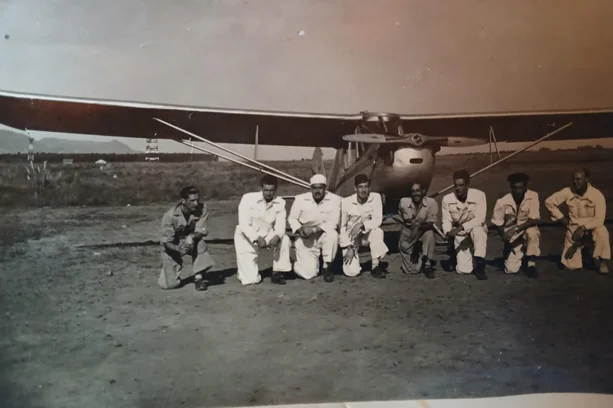 | José Iramir (de boina branca) no dia em que tirou sua carteira de piloto, o brevê (Foto: Arquivo Pessoal) |