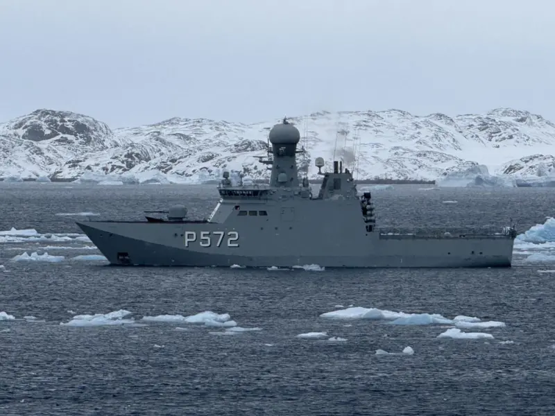 Um barco de patrulha da Marinha dinamarquesa nas águas da Groenlândia (Crédito,Getty Images)