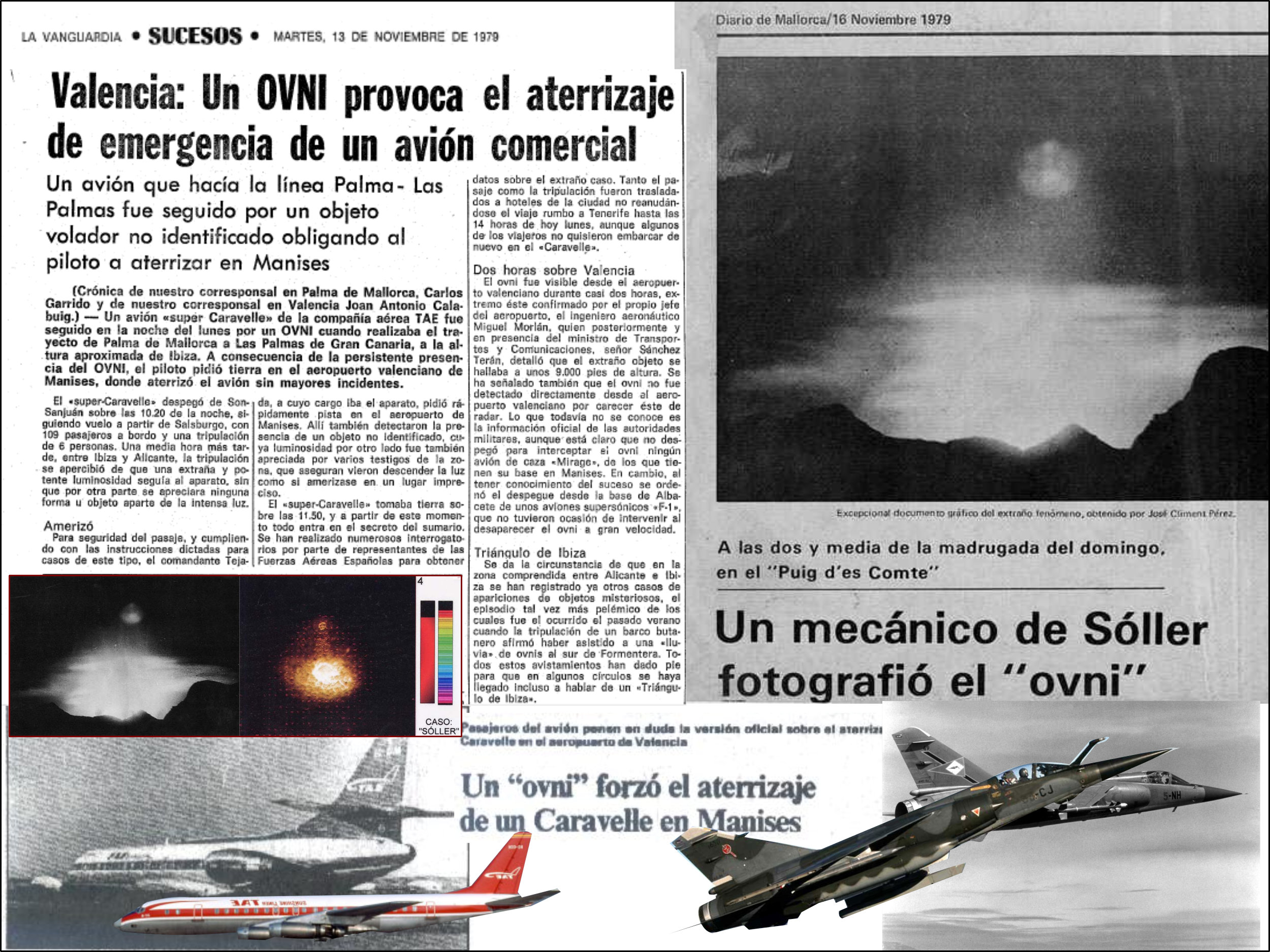 Diante da falta de resposta a todas as tentativas de comunicação, um Mirage F1 decolou da base aérea de Los Llanos (Albacete), nas proximidades, para identificar o fenômeno. O piloto, o capitão da Força Aérea Espanhola Fernando Cámara, precisou aumentar sua velocidade para Mach 1,4 apenas para conseguir contato visual com o que ele percebeu como um cone truncado exibindo uma cor brilhante e variável, mas, apesar de seus esforços iniciais, o objeto desapareceu rapidamente de vista. O piloto foi informado sobre um novo sinal de radar, que indicava a possibilidade de outro objeto estar próximo a Sagunto (Valência).