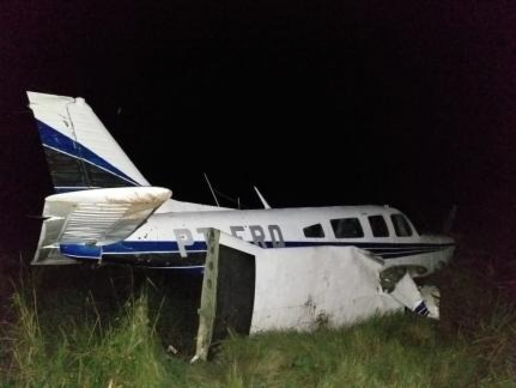 Avião de pequeno porte fez um pouso forçado em uma fazenda na noite desta quinta-feira (31)