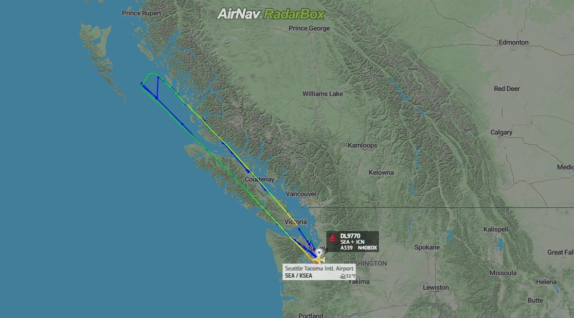 Um voo internacional da Delta Air Lines entre Seattle, nos Estados Unidos, e Seul, na Coreia do Sul, foi interrompido após a decolagem por causa de uma peça mal fixada.