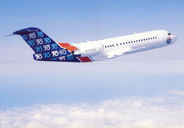 Em 4 de abril de 1993, o Fokker 70 (F70) realizou seu primeiro voo. O protótipo PH-MKC partiu de Woensdrecht, no sul da Holanda. A aeronave havia sido convertida do segundo protótipo do Fokker 100 (F100), o irmão maior do F70.