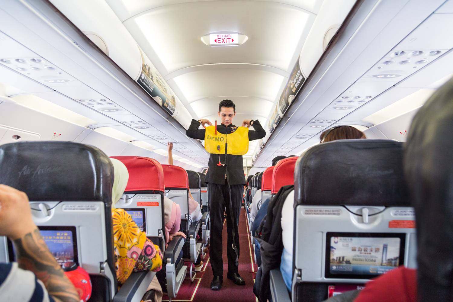 Uma demonstração de segurança pela tripulação de cabine (Foto: ThamKC/Shutterstock)