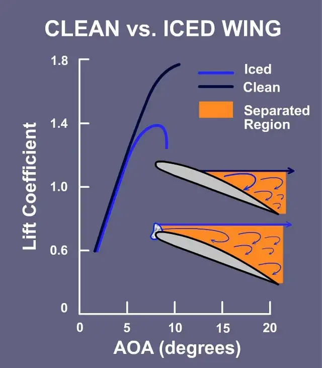| Como o gelo nas asas afeta o AOA máximo de sustentação e estol de uma asa |