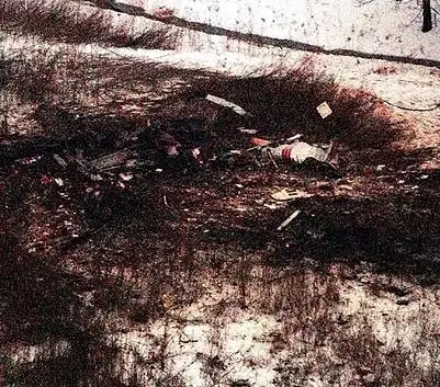 | Uma visão mais próxima dos destroços da aeronave (Arquivos do Bureau de Acidentes Aeronáuticos) |