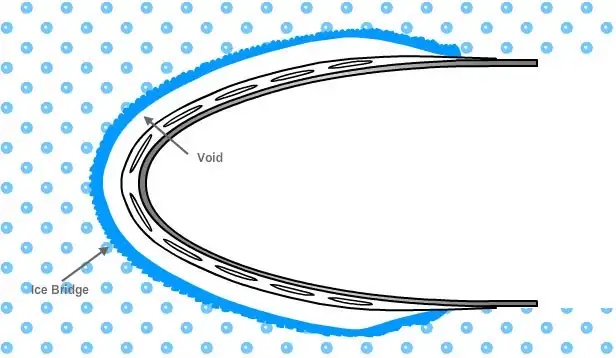 No entanto, a essa altura os cientistas fizeram uma importante descoberta: embora essa camada de gelo fosse fina, ela era muito áspera, com consistência de lixa, o que resultava em severa degradação aerodinâmica.