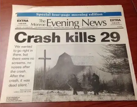 Embora os socorristas tenham corrido para o local do acidente, localizado na zona rural do condado de Monroe, cerca de 30 quilômetros a sudoeste do aeroporto, eles encontraram apenas um buraco fumegante no solo cercado por destroços mutilados. Não havia possibilidade de sobrevivência; todos os 29 passageiros e tripulantes morreram instantaneamente com o impacto.