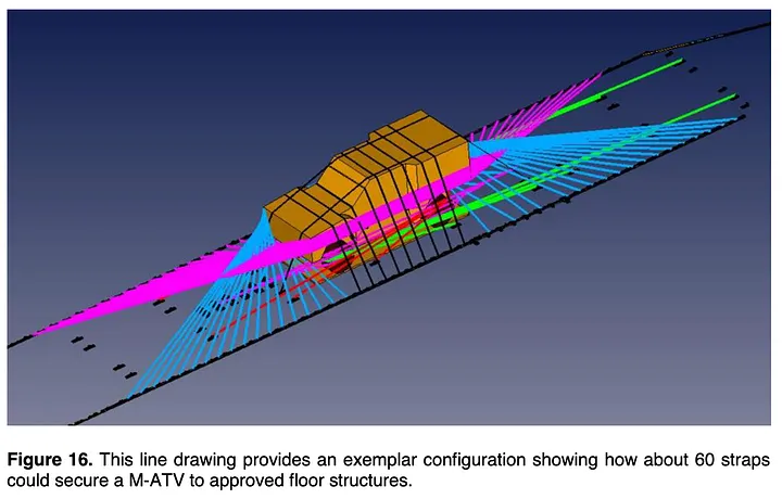 | Como um único M-ATV deveria ter sido protegido se as diretrizes da Boeing para cargas altas e rígidas fossem seguidas (NTSB) |