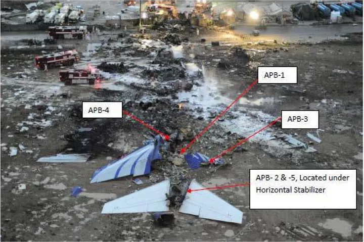O número de pistas escondidas nos destroços provou ser substancial. Por exemplo, várias peças do avião foram encontradas na pista, incluindo um pedaço de revestimento da fuselagem, um pedaço de tubulação do sistema hidráulico 2 e parte do conjunto de antena de um M-ATV.