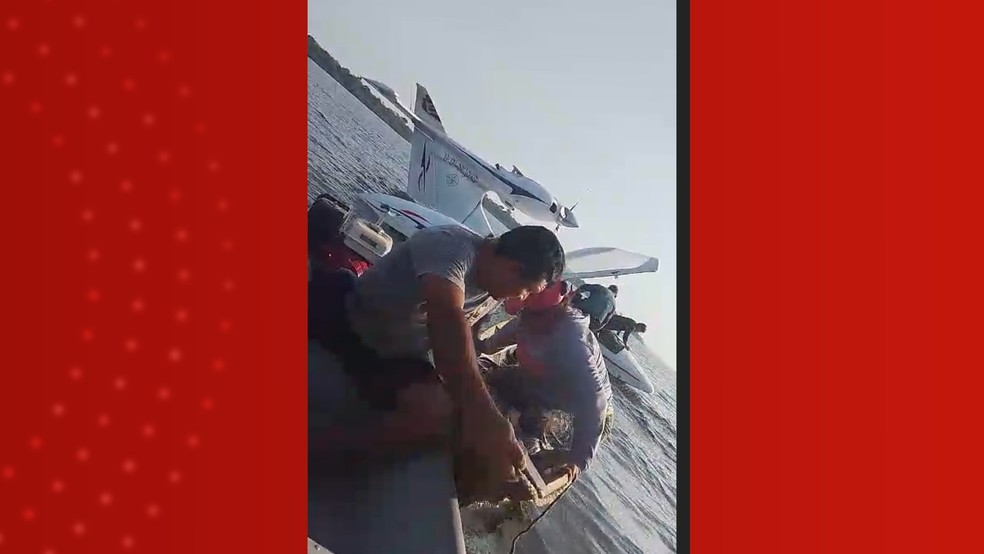 Testemunhas filmaram o momento do resgate. Nas imagens do vídeo no link abaixo é possível ver o piloto em uma canoa, após ser retirado da água por moradores da região.