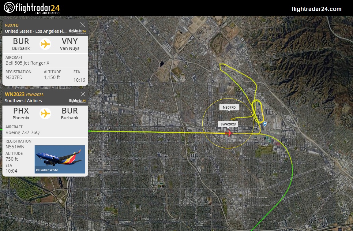 O avião estava a uma milha de distância quando o controle de tráfego aéreo notou um helicóptero do Corpo de Bombeiros de Los Angeles fazendo pousos rápidos na mesma pista. O controlador disse ao helicóptero para permanecer no local e disse ao piloto da Southwest para "dar a volta" e não pousar.