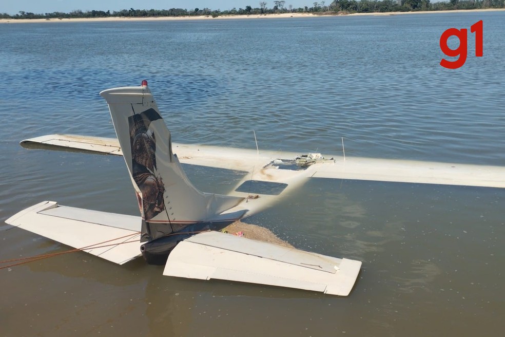 Um avião de pequeno porte foi encontrado parcialmente submerso no Rio Araguaia, em um local conhecido como porto do Elveciano, próximo à Santa Terezinha, a 1.329 km de Cuiabá, nessa quarta-feira (20) (assista acima). Segundo a Polícia Militar, a suspeita é de que o avião tenha feito um pouso forçado, após apresentar pane.