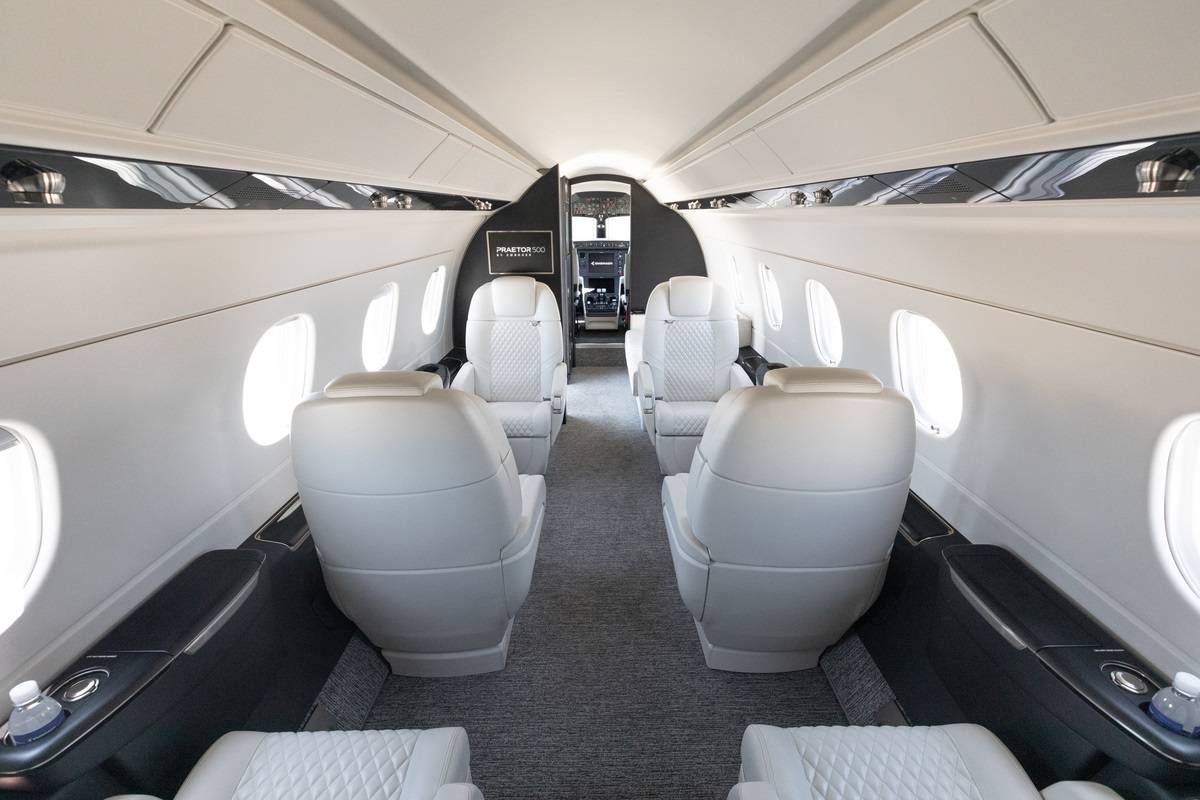 | Dentro da cabine de um Embraer Praetor 500 (Foto: Embraer) |