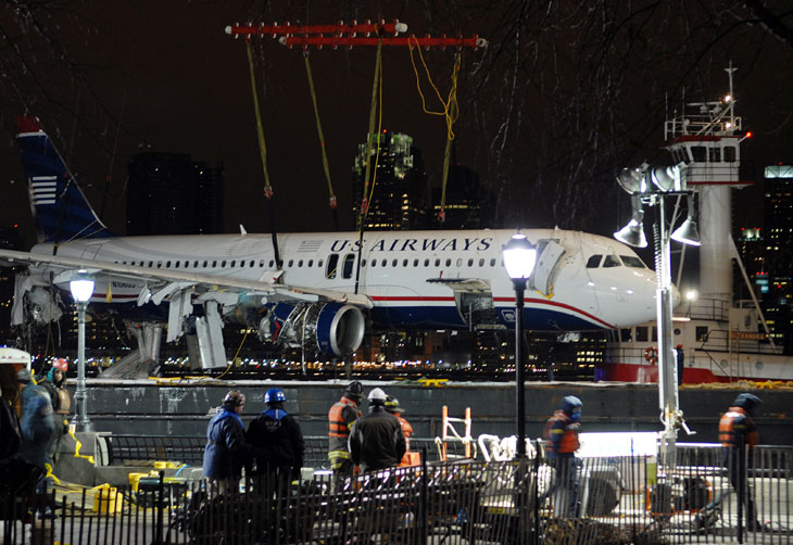 O Airbus foi retirado do rio Hudson no sábado. Imagens de televisão mostraram guindastes retirando o corpo da aeronave cuidadosamente das águas congeladas do rio Hudson.