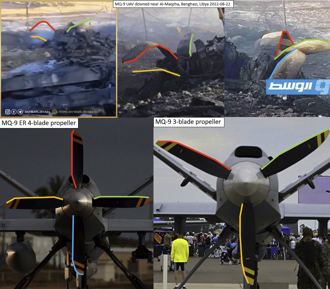 Fotografias não verificadas dos destroços sugerem que poderia ter sido um drone MQ-9 Extended Range (ER), uma variante operada exclusivamente pela Força Aérea dos Estados Unidos.