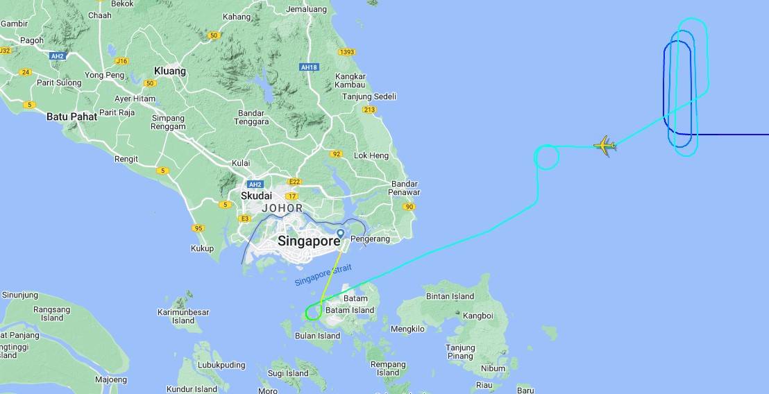 Apesar da ameaça, o voo continuou em direção ao seu destino, iniciando a descida pouco menos de duas horas depois. No entanto, como visto no mapa abaixo, ele circulou várias vezes ao se aproximar de Cingapura. Sua chegada à cidade-estado ocorreu sob a escolta de dois caças F-16C/D da Força Aérea da República de Cingapura. Ele pousou em segurança às 05:51, hora local, apenas seis minutos atrasado.