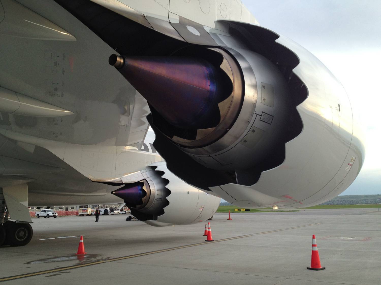 | Motor do Boeing 787 Dreamliner que gera mais de 100.000 libras de empuxo (Foto: RAF_YYC) |