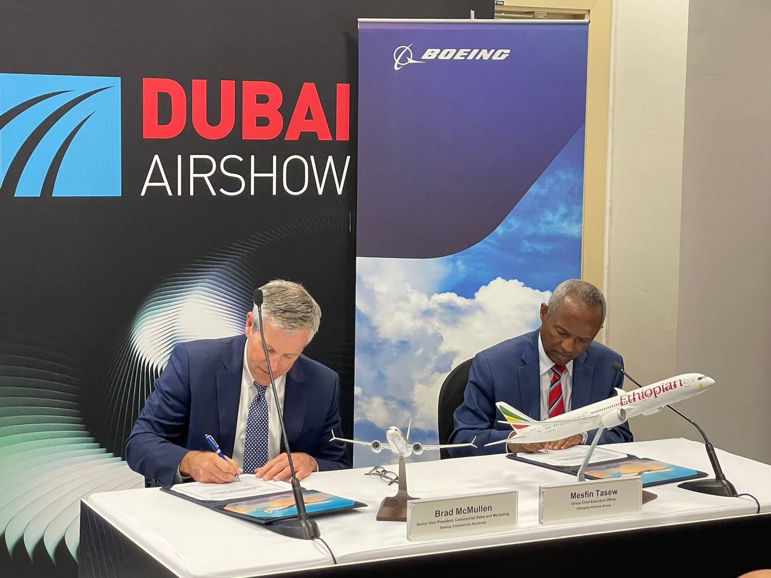 | Executivos da Boeing e da Ethiopian Airlines no Dubai Airshow 2023 (Foto: Sumit Singh/Simple Flying) |