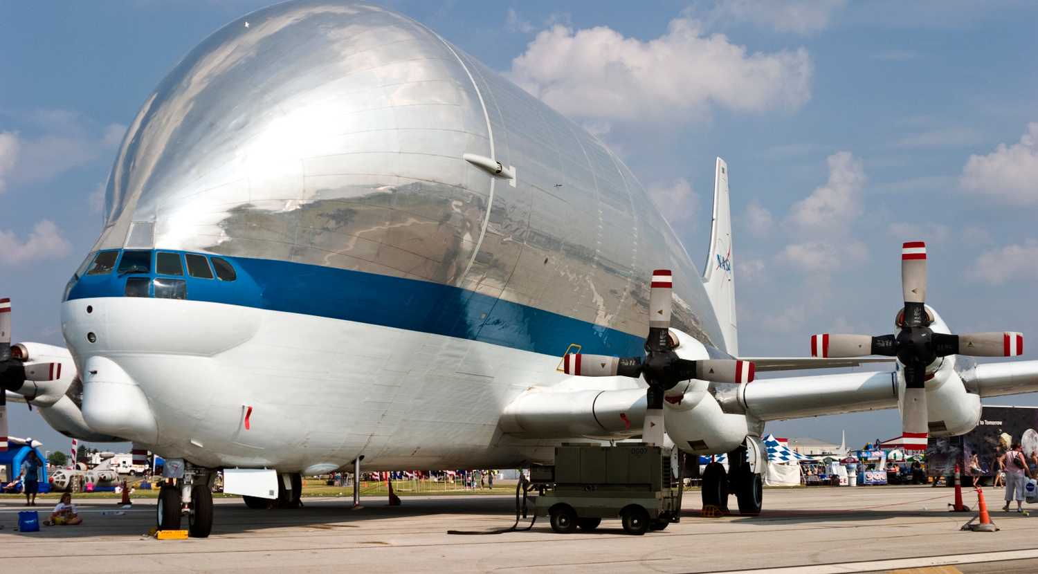 "Ele foi apelidado de 'Guppy grávido' pelos engenheiros devido ao seu formato bulboso – criado ao aparafusar uma fuselagem inteiramente nova em cima de um avião existente... De acordo com a NASA, a aeronave superdimensionada, projetada para transportar grandes cargas, como outras aeronaves e componentes da estação espacial, continua a atrair espanto por onde passa."