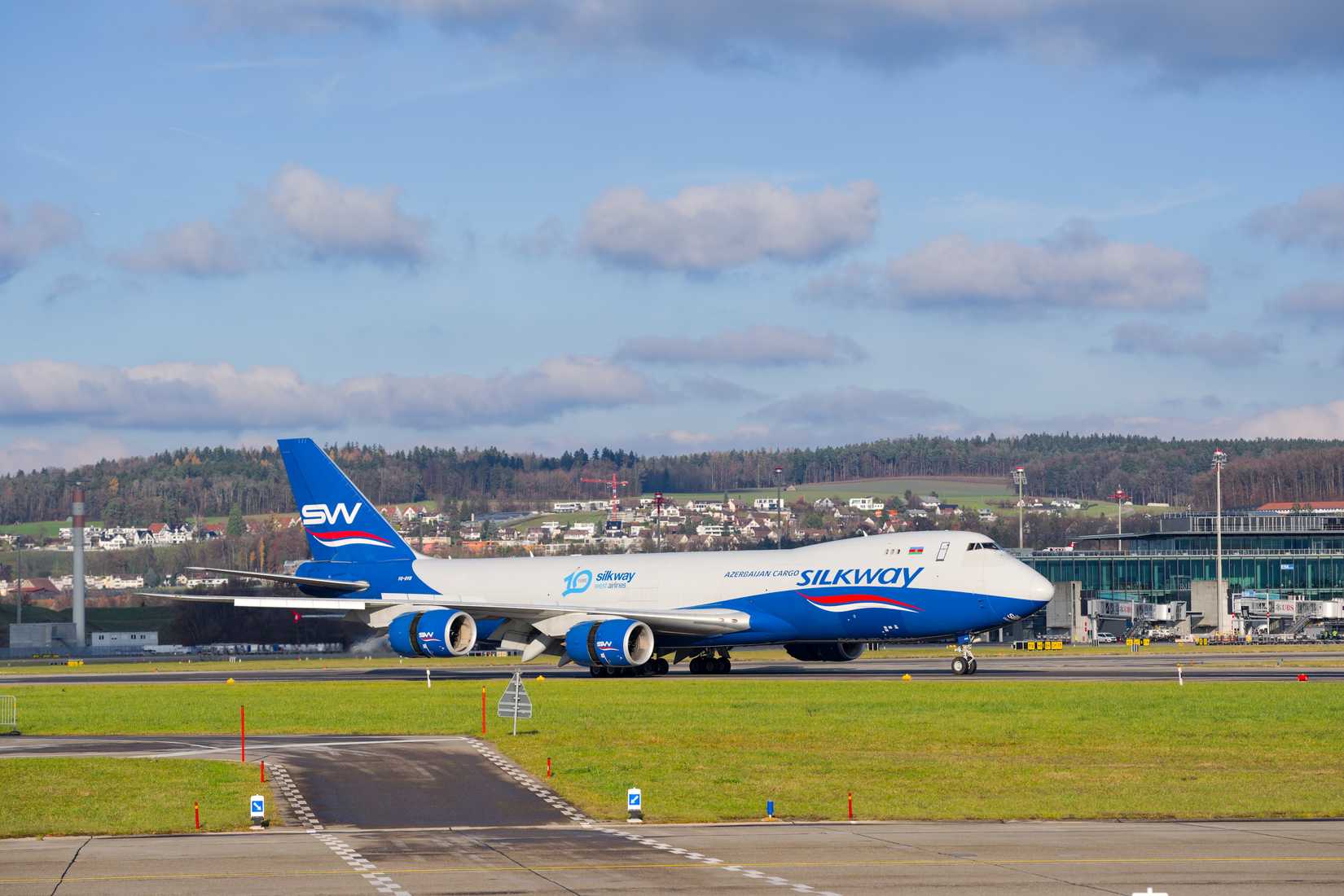 | Boeing 747-8F da Silk Way West Airlines Kazakhstan, pousando no Aeroporto de Zurique, na Suíça (Crédito: Shutterstock) |