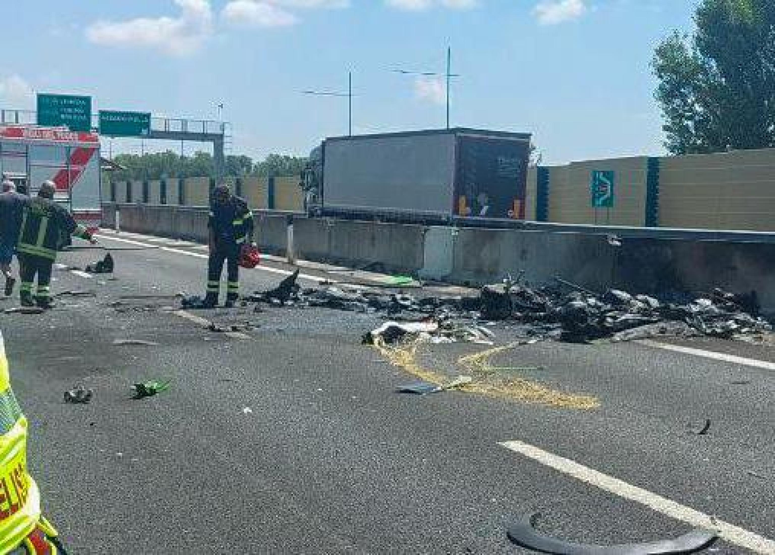 | Um motor fica na rua após o acidente (Sam Yeh) |